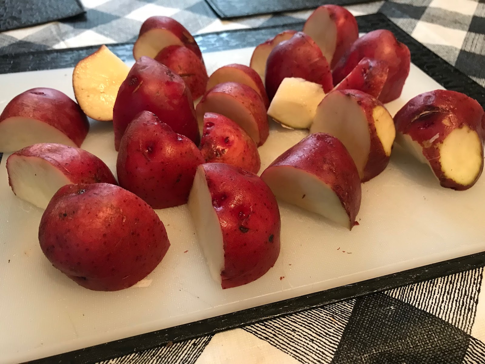 Instead of roasting potatoes which is usually my go to way of making potatoes as a side, I decided to make garlic mashed red potatoes to go with dinner. So they wouldn't be just your ordinary mash I decided to use red potatoes and leave the skin on while adding garlic and parmesan cheese because who doesn't love cheese? This mash won over my mother who doesn't go for mash as her potato option so I'm sure it will go over in your house.